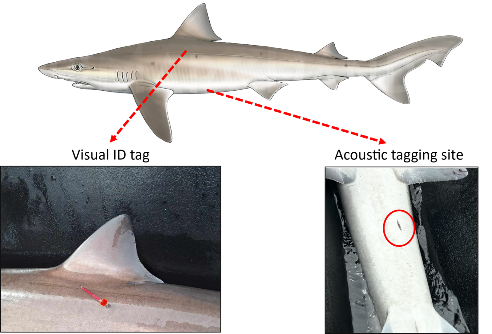 If it is safe to do so, please take a photo of the acoustic tagging site so we can check healing of sharks after tagging.